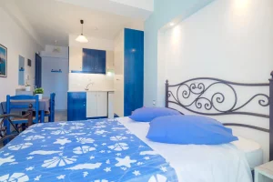 Blue Apartments is the perfect choice for peaceful and relaxing holidays, ideal for couples and families alike. Perched on a charming little hill, the property offers breathtaking panoramic views that create a truly unforgettable setting.