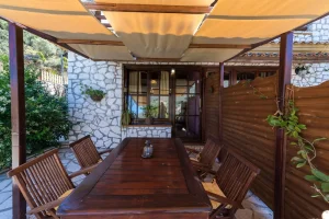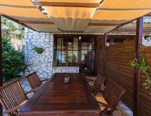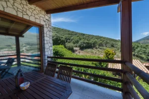 The property consists of four separate apartments on 3 different levels. All the apartments have been built with natural materials of stone and wood, handcrafted by the owner with great attention to detail and furnished with care and style offering all required facilities. Each apartment has a private patio with breathtaking views to the sea, and guests can also make use of the beautiful outside space where they can relax, have a BBQ and enjoy the views and atmosphere of this magnificent, peaceful location.