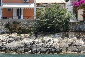 Uniquely situated at the waters edge, Efi’s Cottage is a captivating and relaxing for a holiday! Stone steps lead from the terrace door directly the sea – you are literally a stone’s throw from enjoying the crystal clear waters in almost total privacy! At the edge of the village the cottage provides tranquility yet is still within walking distance of Fiscardo’s centre. The waterfront location provides an extensive view of Fiscardo, its lighthouse and the famous neighboring island of Ithaca. This traditional, cosy cottage is ideal for a romantic holiday for two! Offering privacy and a stunning terrace perched right on the edge of the sea. The cottage consists of two floors. On the top floor there is a light and airy bedroom furnished with a super-sized king bed (which can be transformed into two single beds), large wardrobe and dressing table, air conditioning, a flat screen TV/DVD and two comfortable armchairs. There are two windows, sea view, to let in the sea breeze, or you may prefer the air conditioning! Downstairs there is a small kitchen and bathroom. The kitchen provides adequate facilities for self-catering. It comes with an electric oven, refrigerator, cooking utensils, pots, pans, kitchenware and flatware, a coffee maker, microwave and toaster. The bathroom has a wc, sink and shower. Weekly cleaning and linen change is carried out, but should you require complete privacy extra linen is provided for your stay, as well as beach towels. The kitchen leads onto two spacious terraces: the first is equipped with a barbecue grill, and a large dining table and chairs so you can enjoy your meals with the amazing view, and at nighttime enjoy the stars! The second terrace provides a lounge area with 2 sunbeds and a sofa for sunbathing, outdoor curtains ensure total privacy! There are also two sunbeds down on the rocks for waterside sunbathing. On-road parking available. The cottage is located at the edge of the village, under a kilometer away from the centre of Fiscardo. It is a quiet, private and traditional area surrounded by nature, complete with picture postcard cats!