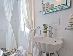 Recently remodeled and tastefully furnished in a traditional-romantic fashion, Villa Ireni boasts a unique charm, with many of the original features from its over half-a century-year-old building still intact. It has 3 bedrooms, one with a garden view and two single beds, one with sea view and two single beds and a double size bed with a sea view. Each room has its own air-conditioning unit. A fully equipped kitchen provides all cooking facilities. The living room is comfortable, with two cozy sofas, a flat-screen TV/DVD set and an individual air-conditioning unit. The villa’s 2 bathrooms, each equipped with a shower and toilet, offer some added convenience to your stay. The villa is composed of two outdoor terraces: The central terrace located downstairs is equipped with a barbecue grill and a spacious dining table for having the coziest evenings in good company. The rooftop terrace, equipped with sunbeds, beach umbrella and a big dining table, offers ample space for sunbathing and enjoying the breathtaking sea view.