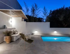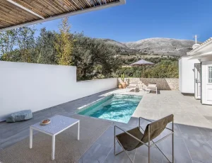 ''Mikro'' is a boutique villa that has minimalistic style with a traditional character. It has been thoughtfully designed throughout with high-end materials, furniture, appliances and lighting, and aims to offer an enhanced holiday experience that introduces guests into the Kefalonian lifestyle.