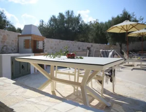 This stone-built luxury villa offers the perfect combination of elegance, comfort, and privacy, featuring a private swimming pool and thoughtfully selected high-quality materials and furniture throughout. For relaxing evenings, guests can enjoy a home cinema system with projector and speakers, with Netflix included, creating the ideal movie-night experience.