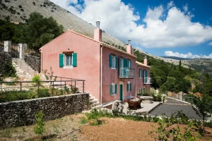 Villa Rosa offers traditional Kefalonian farmhouse accommodation. The villa is completely secluded at the end of a private drive. The villa is surrounded by vineyards, olive groves, cypress trees and forests, with views to the mountains of Kefalonia. The landscaped garden around the villa consists of Mediterranean aromatic essences. The sun terrace is ideally positioned for enjoying the sun – a superb vacation villa for family and friends.