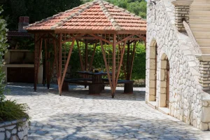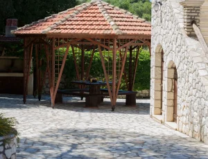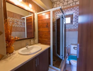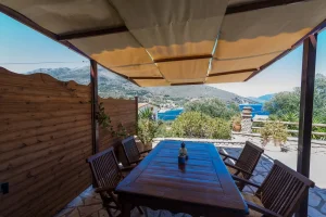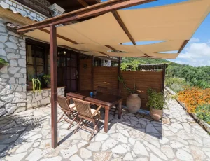 The property consists of four separate apartments on 3 different levels. All the apartments have been built with natural materials of stone and wood, handcrafted by the owner with great attention to detail and furnished with care and style offering all required facilities. Each apartment has a private patio with breathtaking views to the sea, and guests can also make use of the beautiful outside space where they can relax, have a BBQ and enjoy the views and atmosphere of this magnificent, peaceful location.