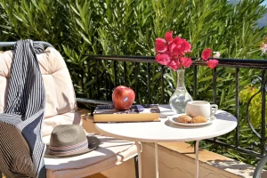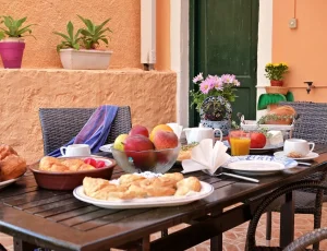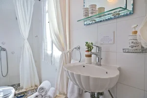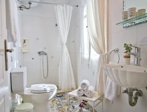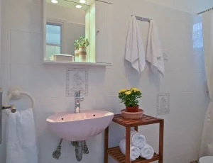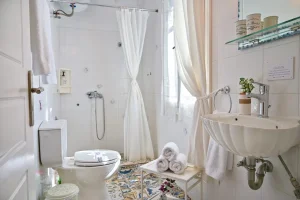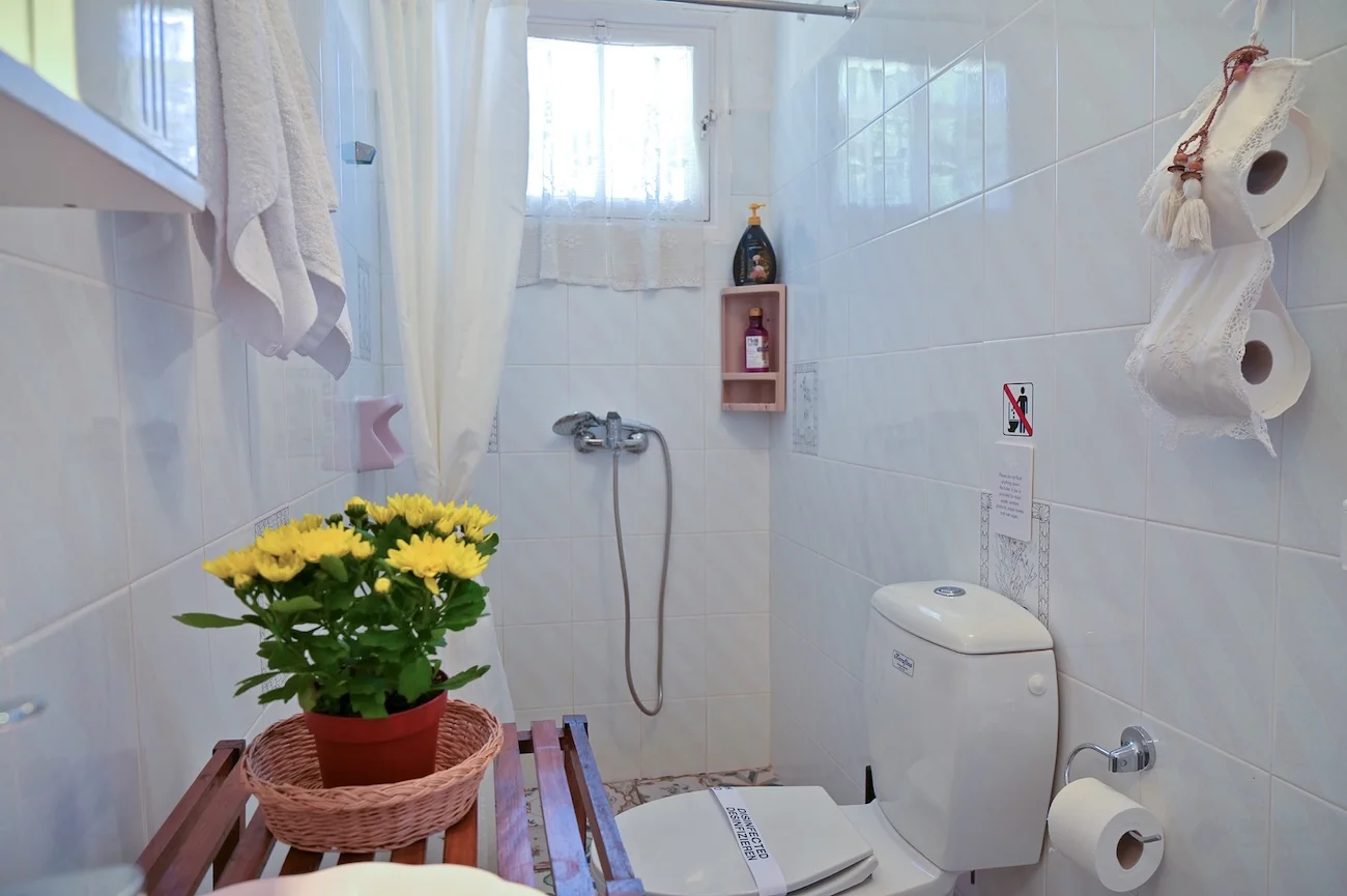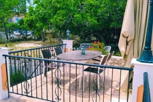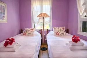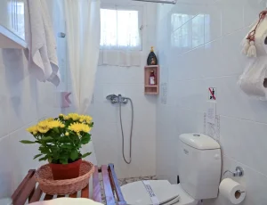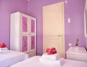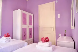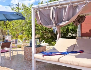 Recently remodeled and tastefully furnished in a traditional-romantic fashion, Villa Ireni boasts a unique charm, with many of the original features from its over half-a century-year-old building still intact. It has 3 bedrooms, one with a garden view and two single beds, one with sea view and two single beds and a double size bed with a sea view. Each room has its own air-conditioning unit. A fully equipped kitchen provides all cooking facilities. The living room is comfortable, with two cozy sofas, a flat-screen TV/DVD set and an individual air-conditioning unit. The villa’s 2 bathrooms, each equipped with a shower and toilet, offer some added convenience to your stay. The villa is composed of two outdoor terraces: The central terrace located downstairs is equipped with a barbecue grill and a spacious dining table for having the coziest evenings in good company. The rooftop terrace, equipped with sunbeds, beach umbrella and a big dining table, offers ample space for sunbathing and enjoying the breathtaking sea view.