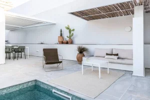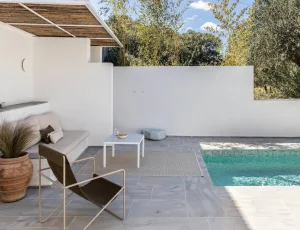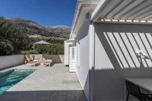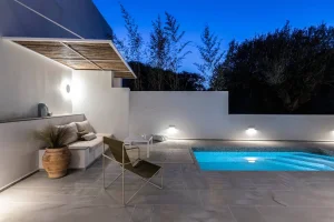 ''Mikro'' is a boutique villa that has minimalistic style with a traditional character. It has been thoughtfully designed throughout with high-end materials, furniture, appliances and lighting, and aims to offer an enhanced holiday experience that introduces guests into the Kefalonian lifestyle.