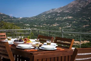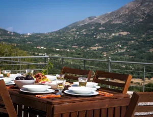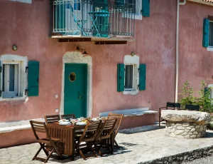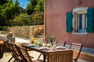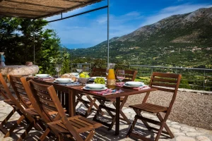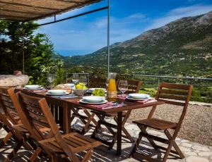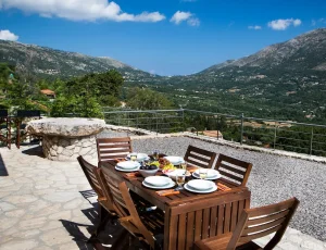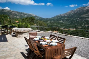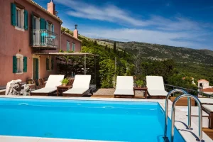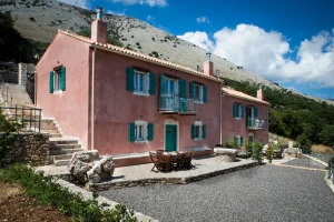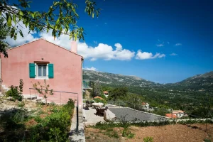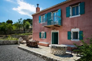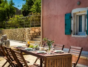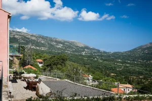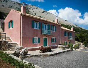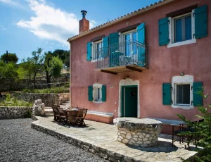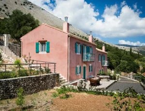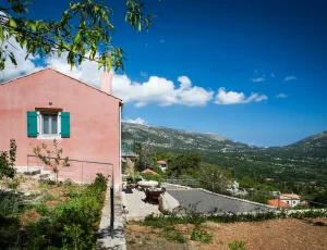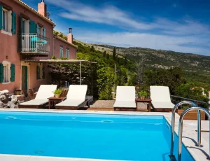 Villa Rosa offers traditional Kefalonian farmhouse accommodation. The villa is completely secluded at the end of a private drive. The villa is surrounded by vineyards, olive groves, cypress trees and forests, with views to the mountains of Kefalonia. The landscaped garden around the villa consists of Mediterranean aromatic essences. The sun terrace is ideally positioned for enjoying the sun – a superb vacation villa for family and friends.